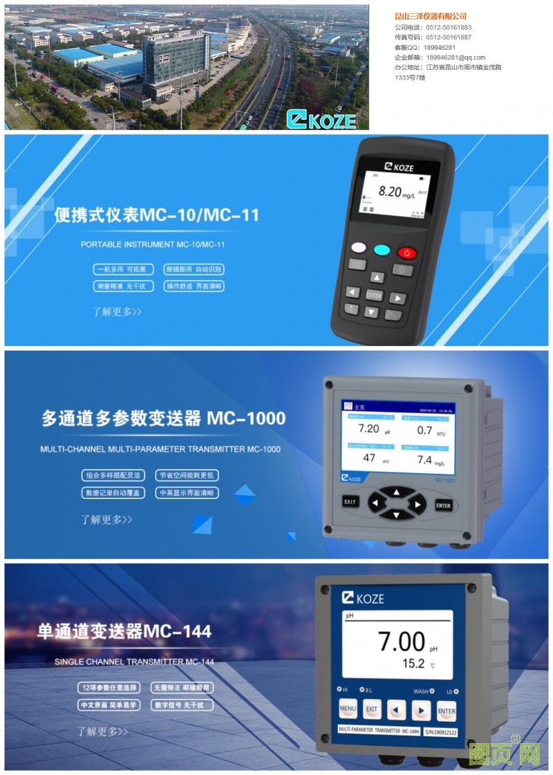 昆山三泽仪器有限公司成立于2010年,致力于水质分析仪器仪表、传感器、系统解决方案的研发、生产、销售及服务。主要产品有pH/ORP、溶解氧、离子浓度、电导度、余氯、浊度、悬浮物、污泥浓度等水质分析仪器仪表及传感器。产品广泛应用于环保、工业制程、农业、科研等领域,涉及工业废水/废气、污染源监控、市政污水、自来水、地表水、反渗透、海水淡化、中水回用等相关行业。