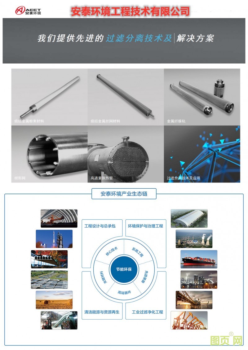 安泰环境工程技术有限公司由安泰科技整合原粉末冶金事业部的过滤材料分公司、工程技术事业部,以及宁波市化工研究设计院有限公司组建而成,安泰环境工程技术有限公司成立于2015年,公司以环境控制服务为核心,形成了工业过滤净化、清洁能源工程及先进智能制造三大业务板块,是一家围绕能源清洁化利用、清洁能源技术,具备产品研发制造、装置配套、系统集成、 工程设计及总承包能力的环境控制综合服务商,帮助工业领域实现过程清洁化、 排放减量化、无害化、以及资源化再利用。