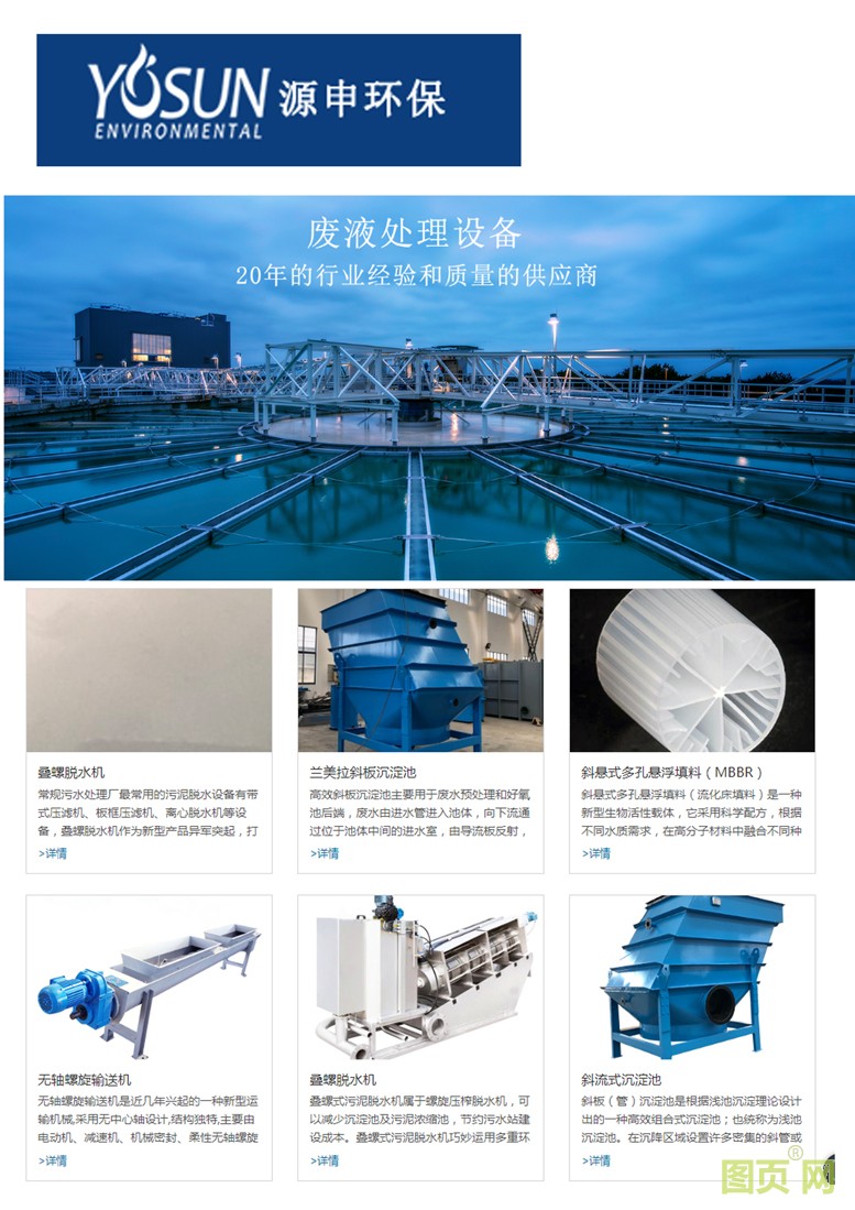 源申环保自成立之初,就已考虑到客户对环保各方面的要求,引进欧美国家先进的环保理念和设备加工技术,依靠在国内多年制造污水处理设备的经验,组建了专业生产气浮、斜板沉淀池、水力筛、无轴螺旋输送、刮泥机、叠螺污泥脱水机等产品的环保公司。公司针对每个客户设计不同的方案,量身定做适合客户的规划方案。公司靠着优质的产品、合理的价格、专业的服务,在国内外电子、化工、制药、印染、造纸、焦化、食品、市政等各个领域,都收到了知名企业和单位的一致好评。