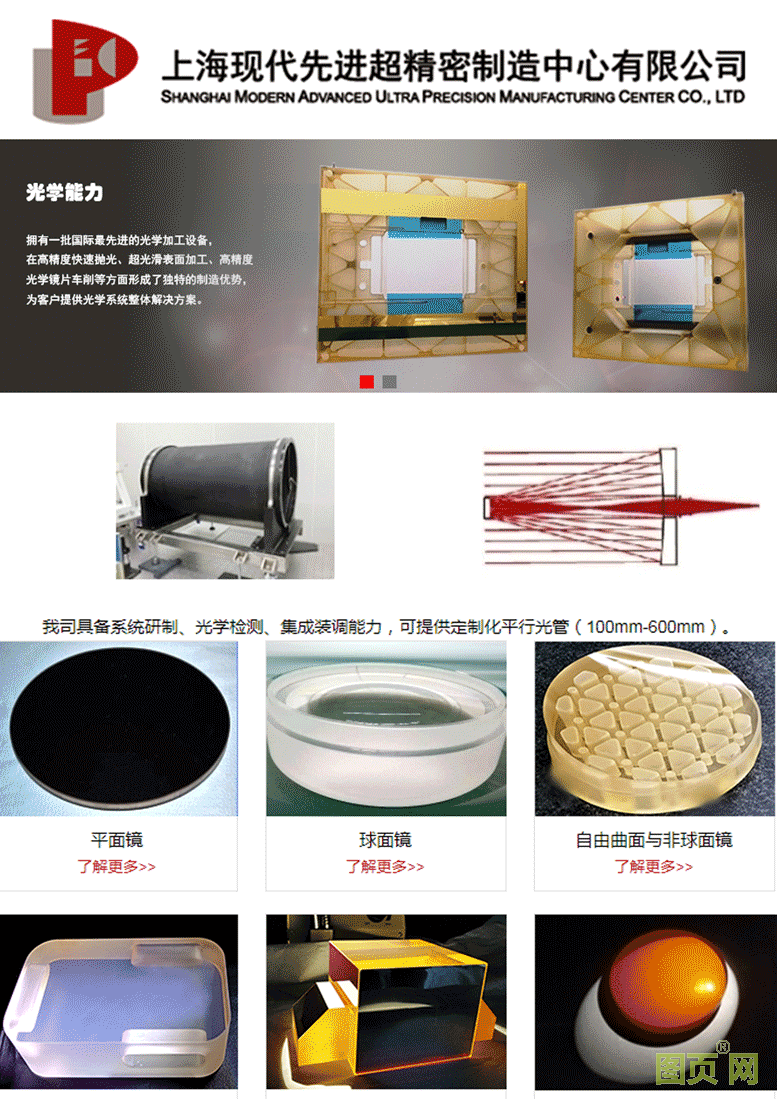 我们能够为客户提供多品种、小批量、高精度、定制化的光学元件及模块化产品。可加工的典型光学元件口径50mm-650mm;加工材料包括光学玻璃、可车削金属、红外材料等;加工类型包括球面、非球面、自由曲面及复合光学元件等。