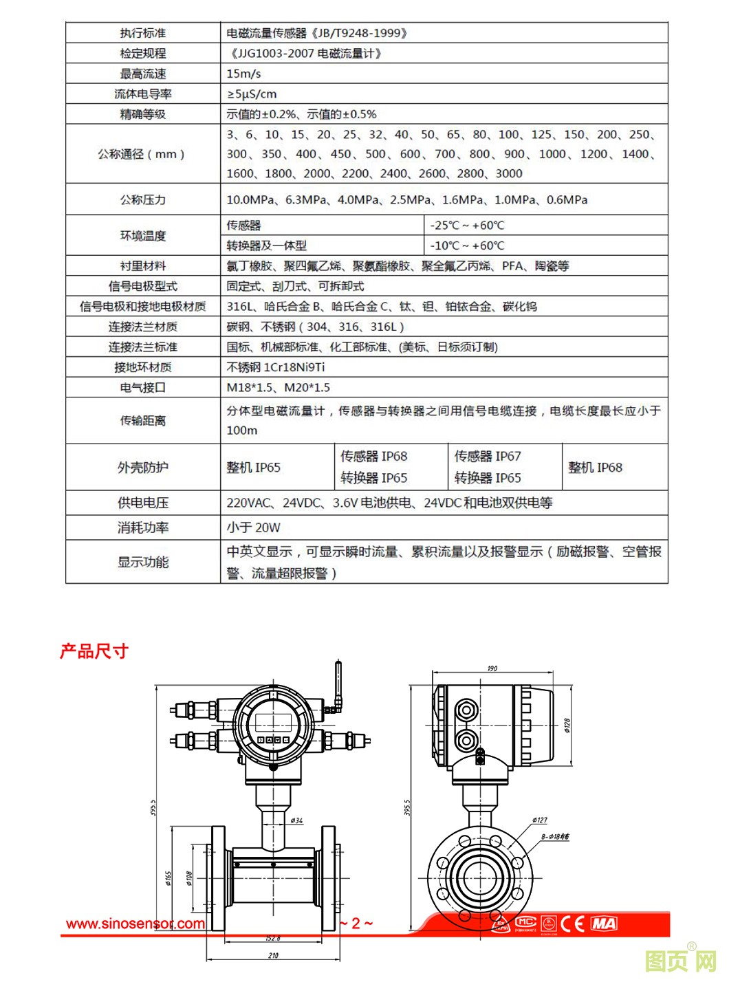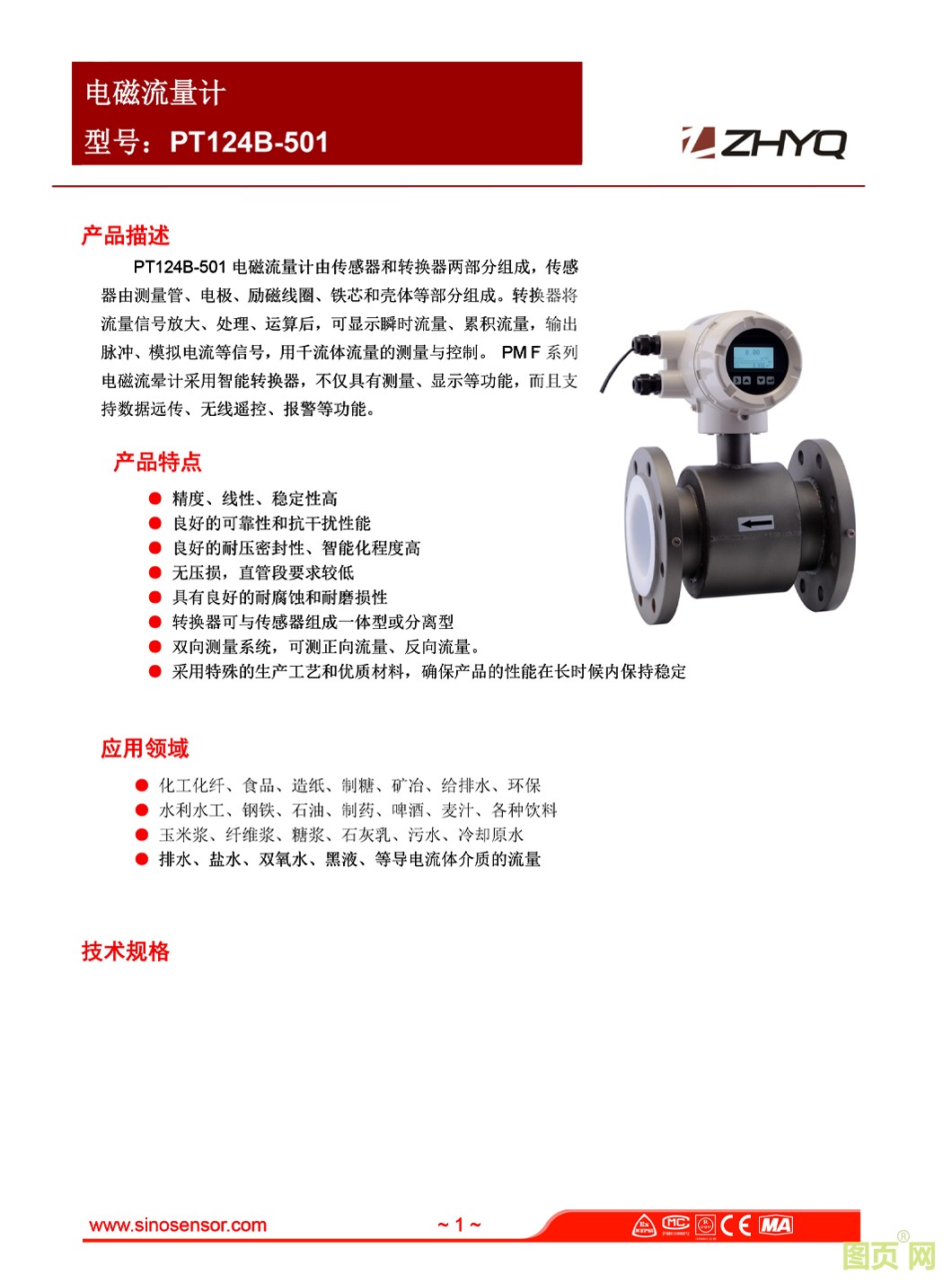 PT124B-501 电磁流量计由传感器和转换器两部分组成,传感器由测量管、电极、励磁线圈、铁芯和壳体等部分组成。转换器将流量信号放大、处理、运算后,可显示瞬时流量、累积流量,输出脉冲、模拟电流等信号,用千流体流量的测量与控制。 PM F 系列电磁流晕计采用智能转换器,不仅具有测量、显示等功能,而且支 持数据远传、无线遥控、报警等功能。