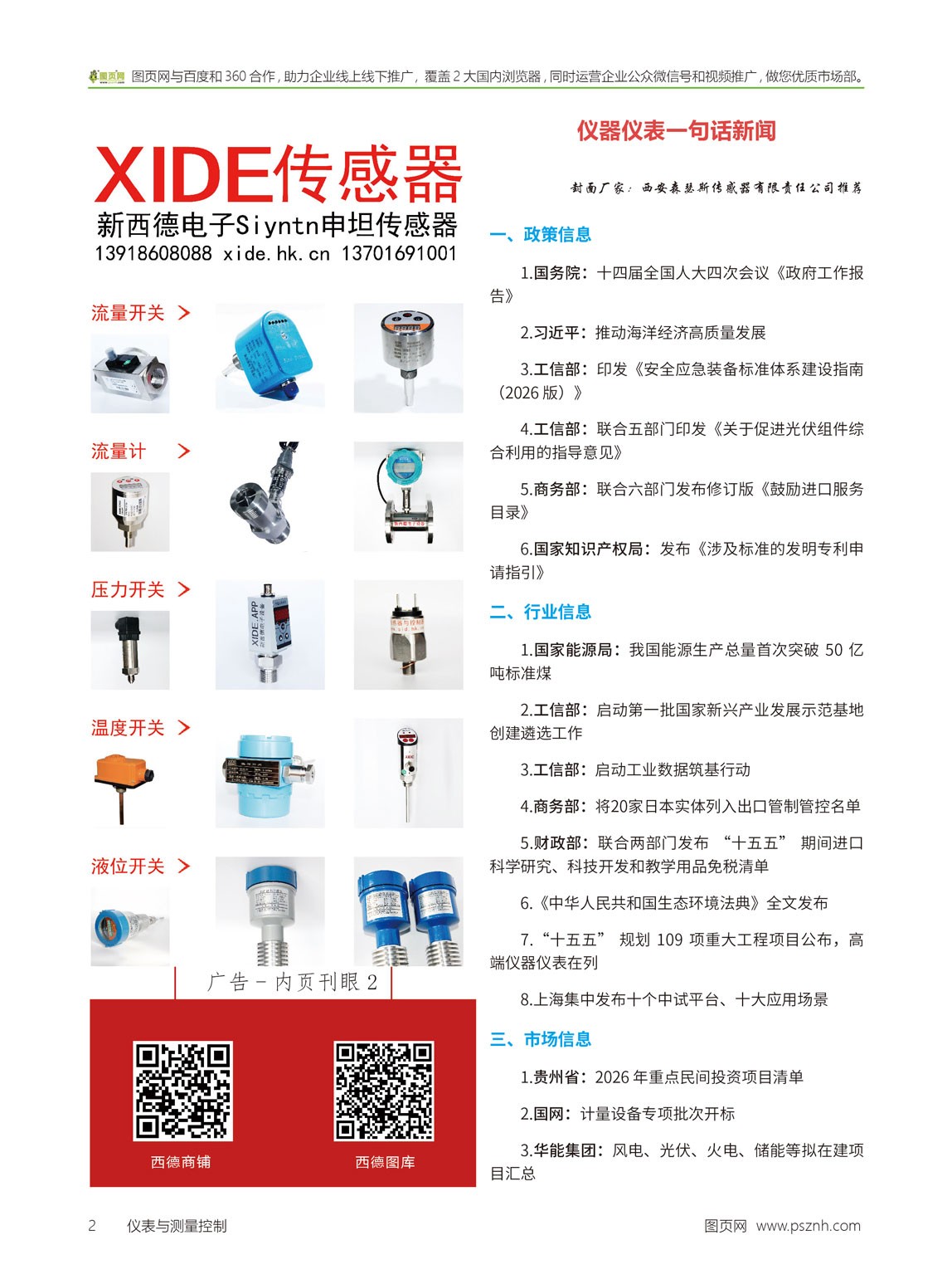 2026年中国环博会及深圳传感器展特刊索引《仪表与测量控制》第三期(2026)总第75期