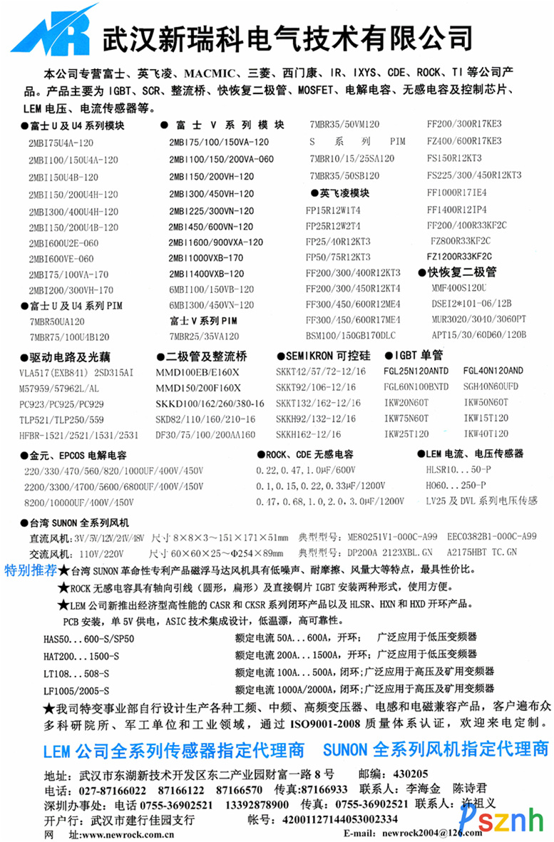 · 富士、三菱、eupec、Semikron、SanRex、IR、APT、IXYS等公司的IGBT、IPM、整流桥、可控硅、IGCT等功率器件、电源模块;