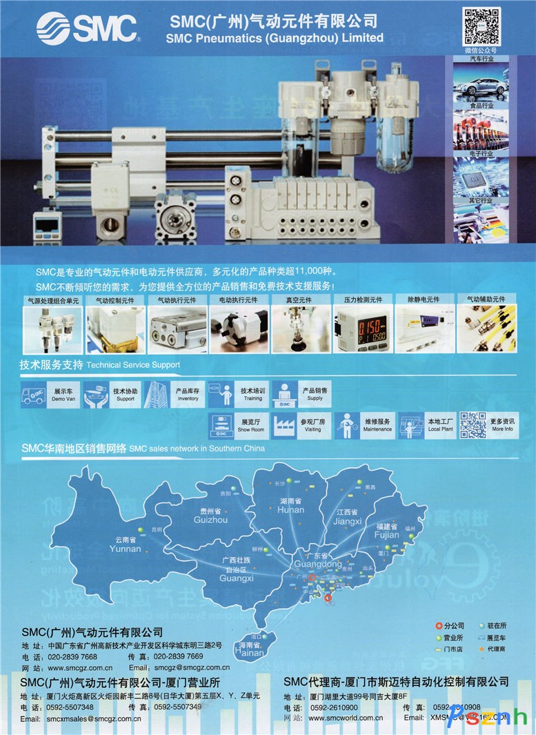 SMC(广州)气动元件有限公司 气压动力机械 方向控制阀 真空元件 润滑元件 深圳电池展 SIAF展