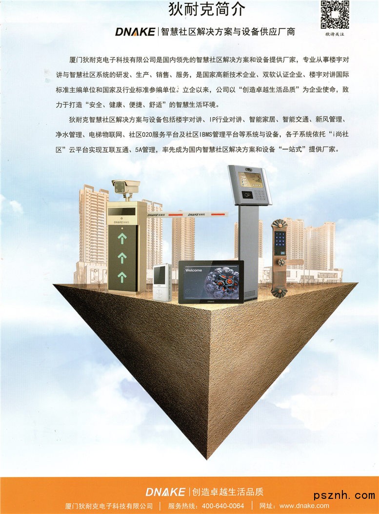厦门狄耐克智能科技股份有限公司”原是一家专业从事楼宇对讲、智能家居产品研发、生产的高新技术企业、国家级双软认证企业,是楼宇对讲行业最具影响力十大品牌,品牌综合实力位居行业第四名。