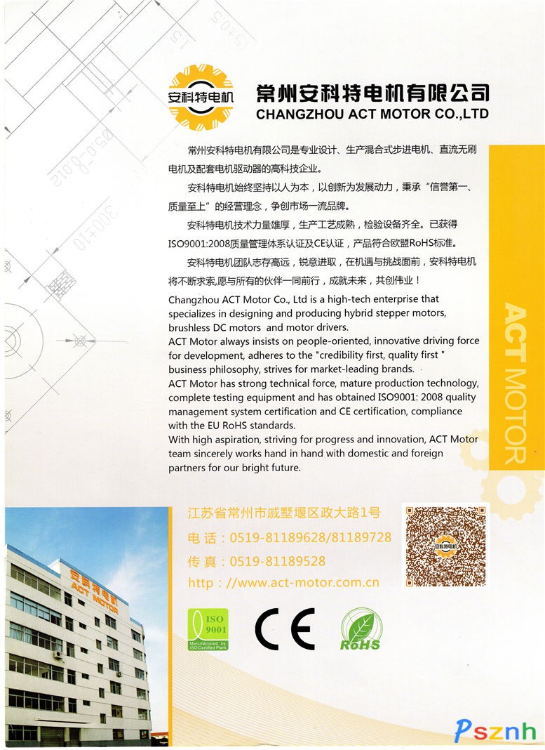 常州安科特电机有限公司是专业设计、生产混合式步进电机及步进电机驱动器的高科技企业。