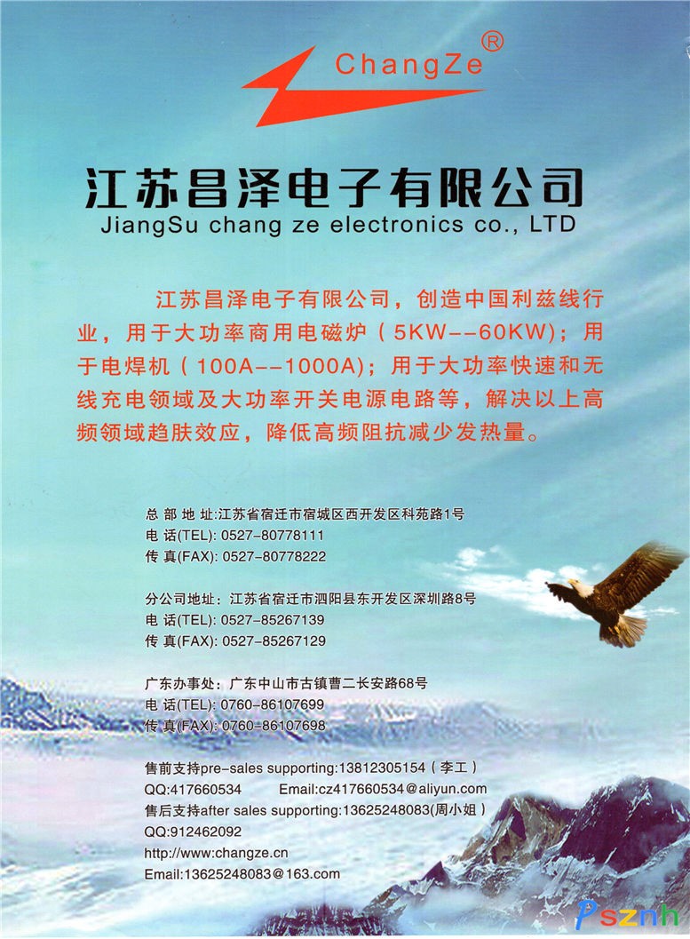 江苏昌泽电子有限公司:主要、生产节能灯电子镇流器,荧光灯电子镇流器,HID电子镇流器(导轨金卤灯),节能灯,电子配件主要有多股丝包线及多股漆包线,高频线,电磁炉专用圆形线及扁形线,电焊机主变压器及电抗器等