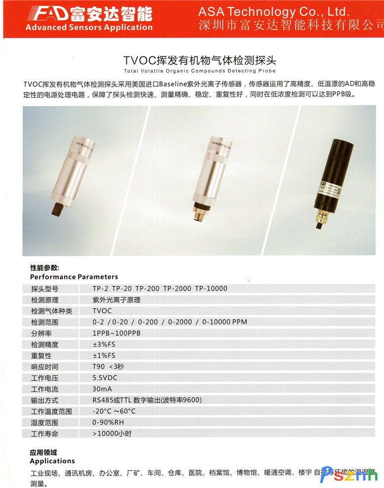 深圳市富安达智能科技有限公司(富安达智能,ASA)创立于2003年,已成为是中国传感器及整体解决方案的领军企业,是专业从事国际领先传感器应用硬件、软件及相关系统的应用设计、服务和销售服务的专业系统配套方案提供商,在国内与多所高校和多个研究院所建立了长期紧密的技术合作关系,并与国外多家公司建立了长远的战略伙伴关系。 深圳富安达提供:氧气传感器(O2),六氟化硫传感器(SF6),PID传感器,TVOC传感器,一氧化碳传感器(CO),二氧化硫传感器(SO2),一氧化氮传感器(NO),CO2红外传感器,甲醛传感器(CH2O),臭氧传感器(O3),硅烷传感器(SIH4),氨气传感器(NH3),磷化氢传感器(PH3),硫化氢传感器(H2S),乙烯传感器(C2H4),氯气传感器(CL2),氢气传感器(H2),氯化氢传感器(HCL),二氧化氮传感器(NO2),氰化氢传感器(HCN),过氧化氢传感器(H2O2),环氧乙烷传感器(ETO),溴化氢传感器(HBr),四氯化钛传感器(TICL4), 可燃气体传感器,红外光源,红外探测器,四氢噻吩传感器(C4H8S),锗烷传感器(GeH4),三氯化砷传感器(AsCl3),三氟化砷传感器(AsF3),丁硫醇传感器(C4H10S),二氧化氯传感器(CLO2),甲胺传感器(CH3NH2),硫氢甲烷传感器(CH3SH),硫酰氟传感器(SO2F2),光气传感器(COCL2),四氯化锡传感器(SnCl4),六氟化钨传感器(WF6),乙醇传感器(C2H6O),一氯甲烷传感器(CH3CL),三氯甲烷传感器(CHCL3),四氯甲烷传感器(CCL4),三聚氟氰传感器(C3F3N3),异丙醇传感器(C3H8O),甲醇传感器(CH4O), 汽车氧传感器,潜水氧传感器,有毒气体传感器,压力传感器。
