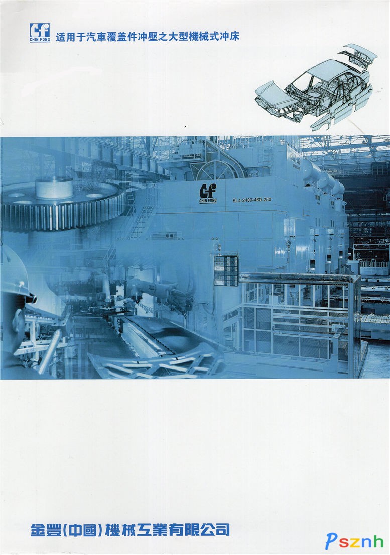 金丰(中国)机械工业有限公司生产的锻压机械产品系以母公司的设计图纸、生产工艺和技术、管理体系为蓝本,与母公司进行同步生产压力机。自1996年投产以来,通过了出口产品质量许可证及ISO-9001:2000版国际品质认证。同时为迎接高性能、高自动化时代的来临,公司全部采用来自日本、台湾之大型、高效、精密之生产设备,并以此来稳定及提升产品品质,产品涵盖2400吨级以下开式、闭式、高速、冷热锻各种类型机械式冲床,主要客户有天津丰田汽车、南昌江铃汽车、章丘海尔、深圳富金、美国STAMTEC等公司。