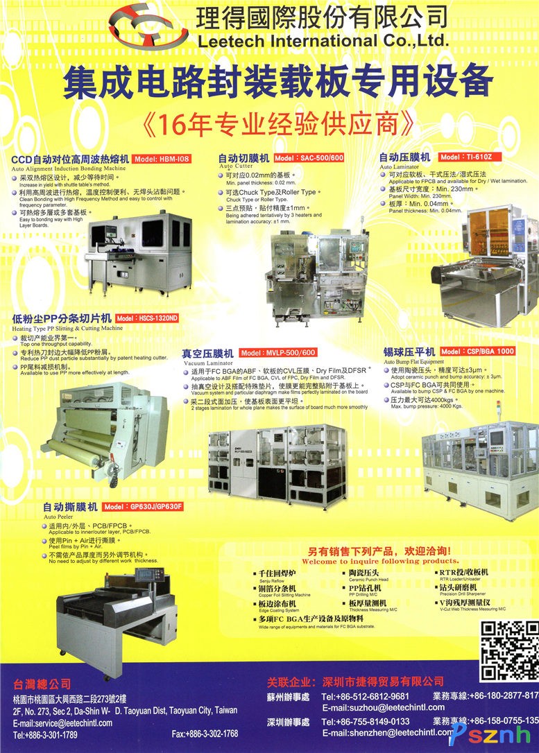 该公司位于地址深圳寶安沙井鎮新桥村坡口B区8巷5号欢迎实地了解具体业务,公司主要经营或服务范围是X-Ray钻靶机; X-Ray检查机; 全自动裁板磨边联机; 热熔机; 基板裁切机; 回转纵切机; 金手指斜边机; 一次元量测机; 线宽线距量测机; 外觀檢查. 您如果想进一步了解可以电话联系该公司