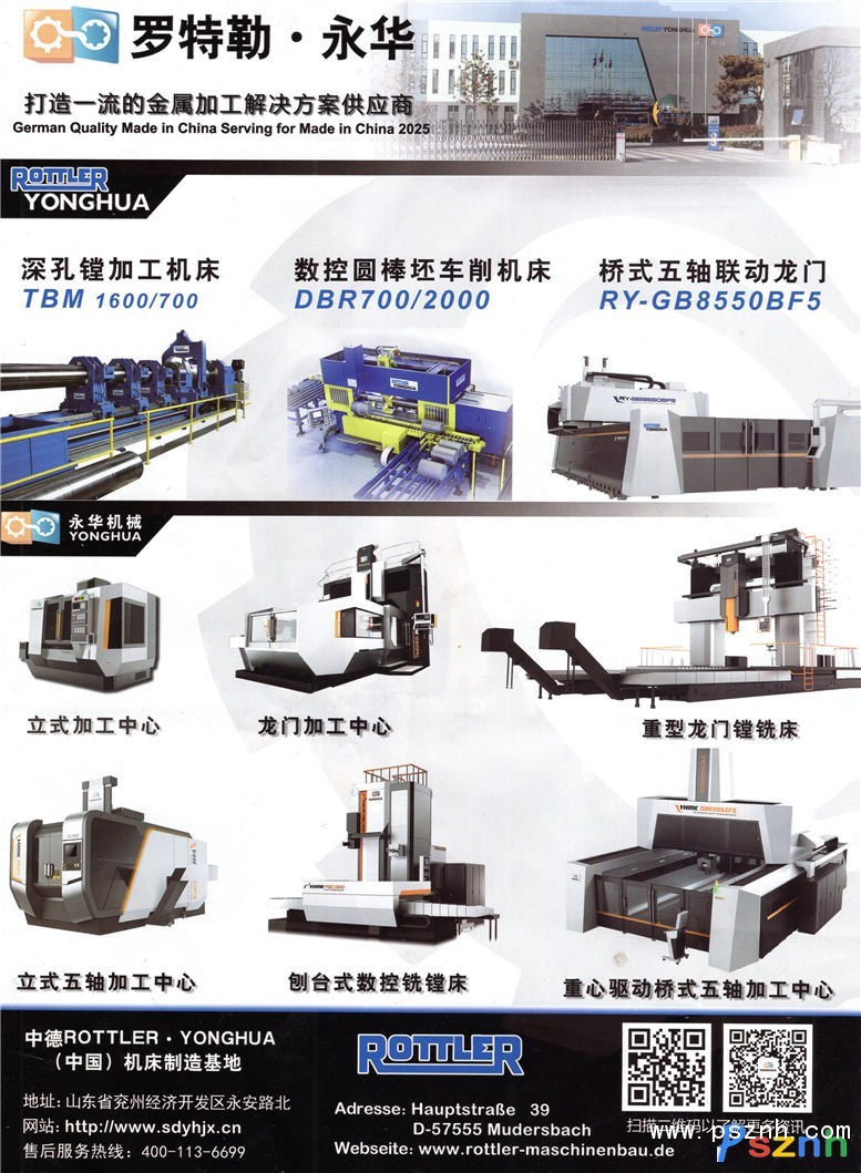 山东永华机械有限公司创立于2007年,是山东省高端装备制造业重点企业之一、高精密数控机床研发生产基地、国家高新技术企业。公司一直致力于高档数控机床的研发制造,以高速立式加工中心、高精密铣镗床、大型龙门加工中心、重型动定梁龙门移动式镗铣床、五轴联动加工中心为核心产品,多年来为国内外航空、汽车、船舶、风电、电子、模具等行业客户提供大量的高效加工解决方案,产品精度、稳定性皆处于行业领先地位。