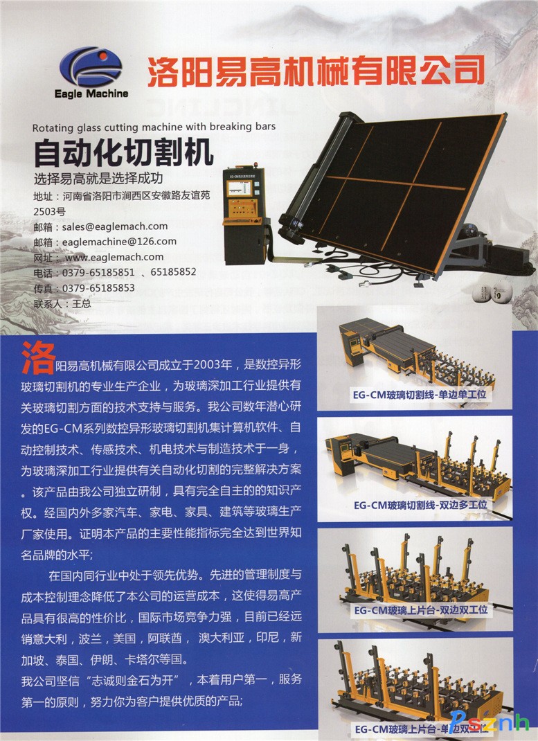 洛阳易高机械有限公司成立于2003年,是数控异形玻璃切割机的专业生产企业,为玻璃深加工行业提供有关玻璃切割方面的技术支持与服务。
