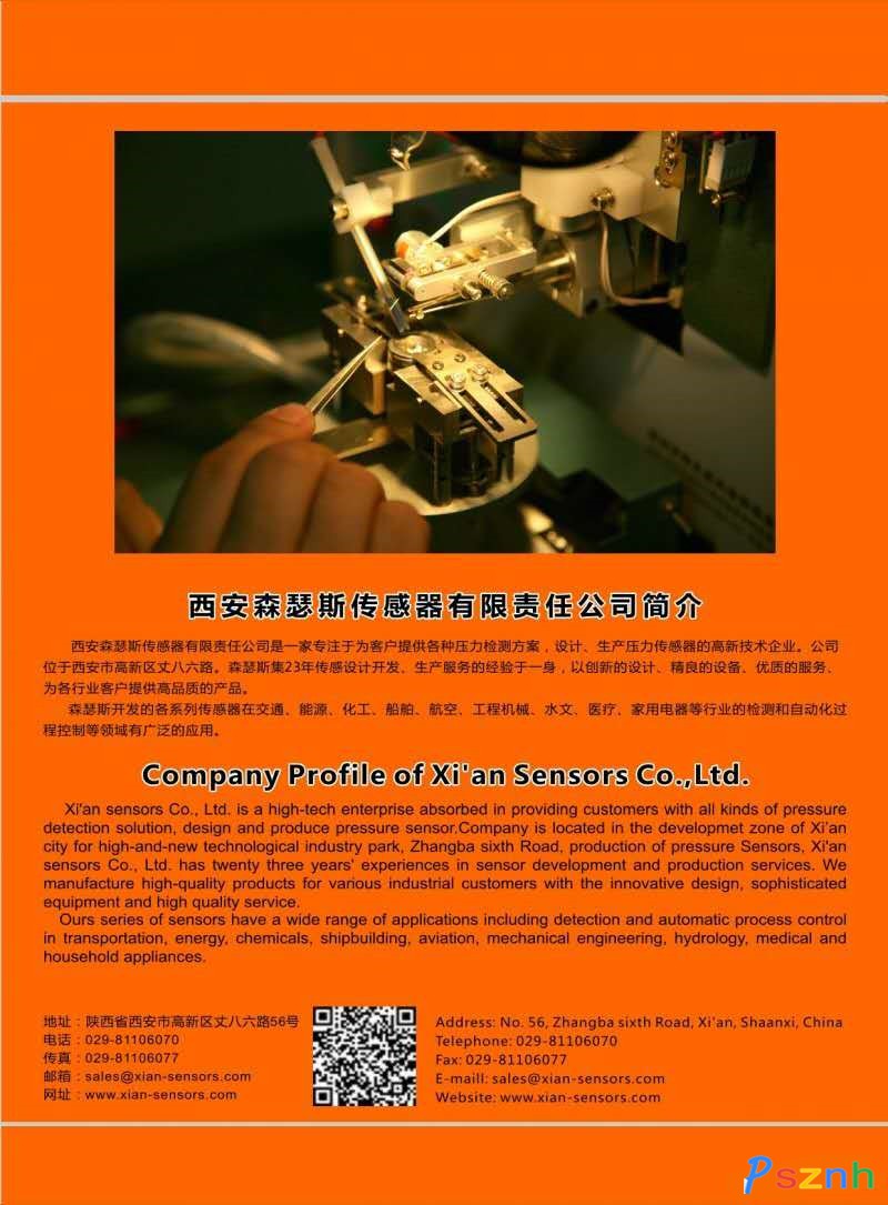 西安森瑟斯传感器有限责任公司是一家专注于为客户提供各种压力检测方案,设计、生产压力传感器的高新技术企业。公司位于西安市高新区丈八六路炬光科技园内。森瑟斯集多年传感设计开发、生产服务的经验于一身,以创新的设计、精良的设备、优质的服务、为各行业客户打造高品质的产品。